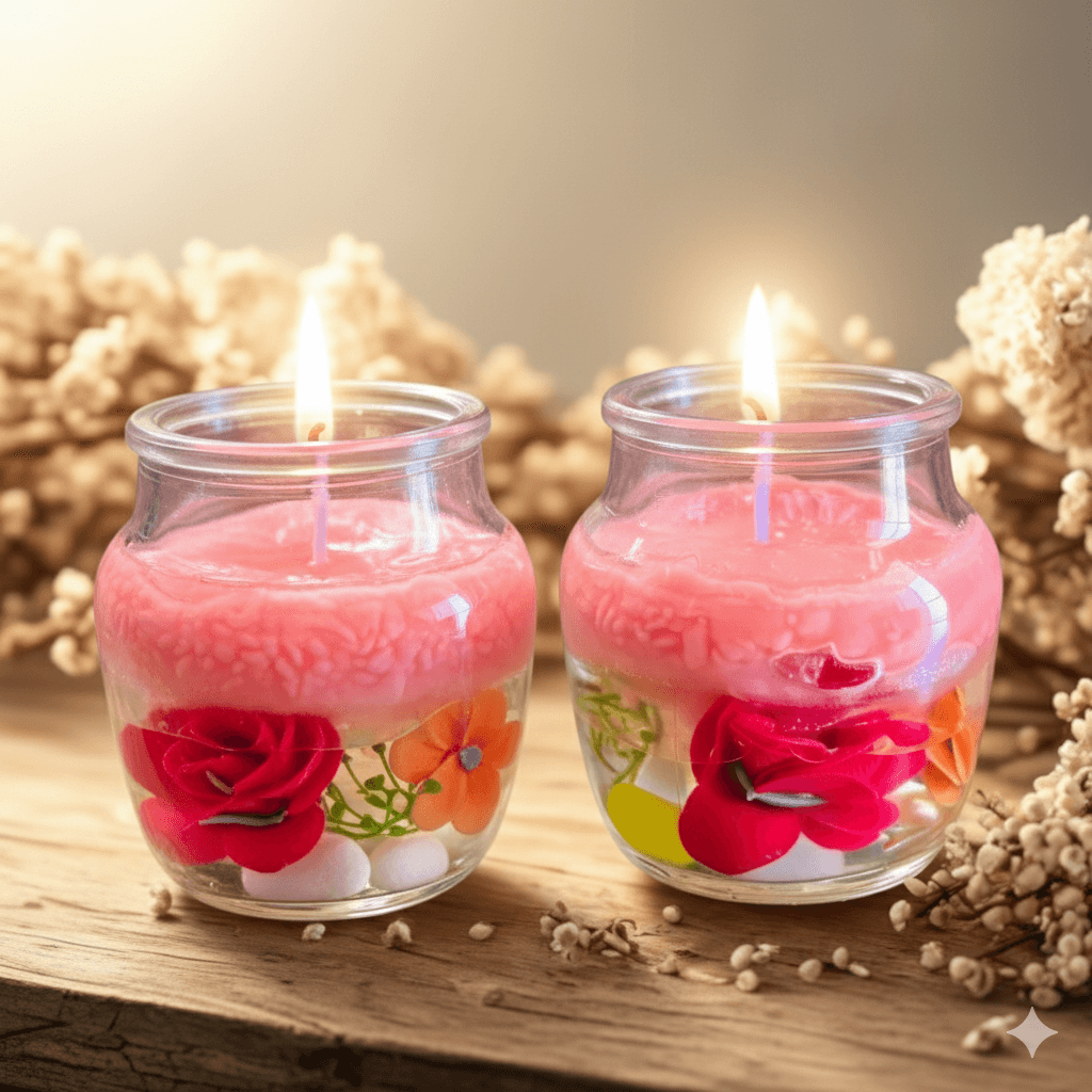 Add warmth and elegance to your space with these Floral Bliss Scented Jar Candles. Handcrafted in glass jars, each candle features vibrant floral decorations and a soothing pink wax that creates a calming ambiance when lit. Perfect for gifting, home décor, or festive celebrations, these candles bring a touch of charm and a gentle fragrance to any corner of your home.