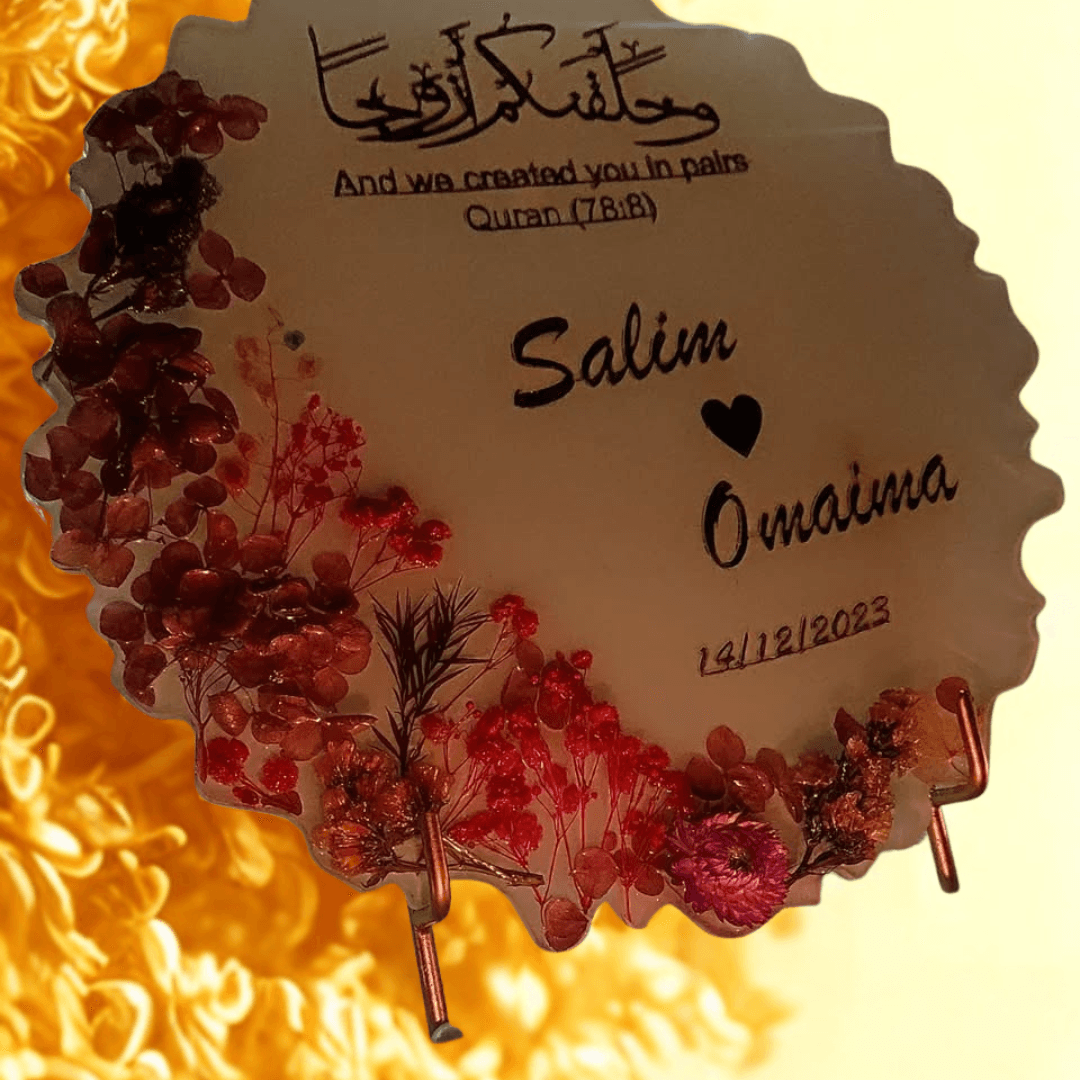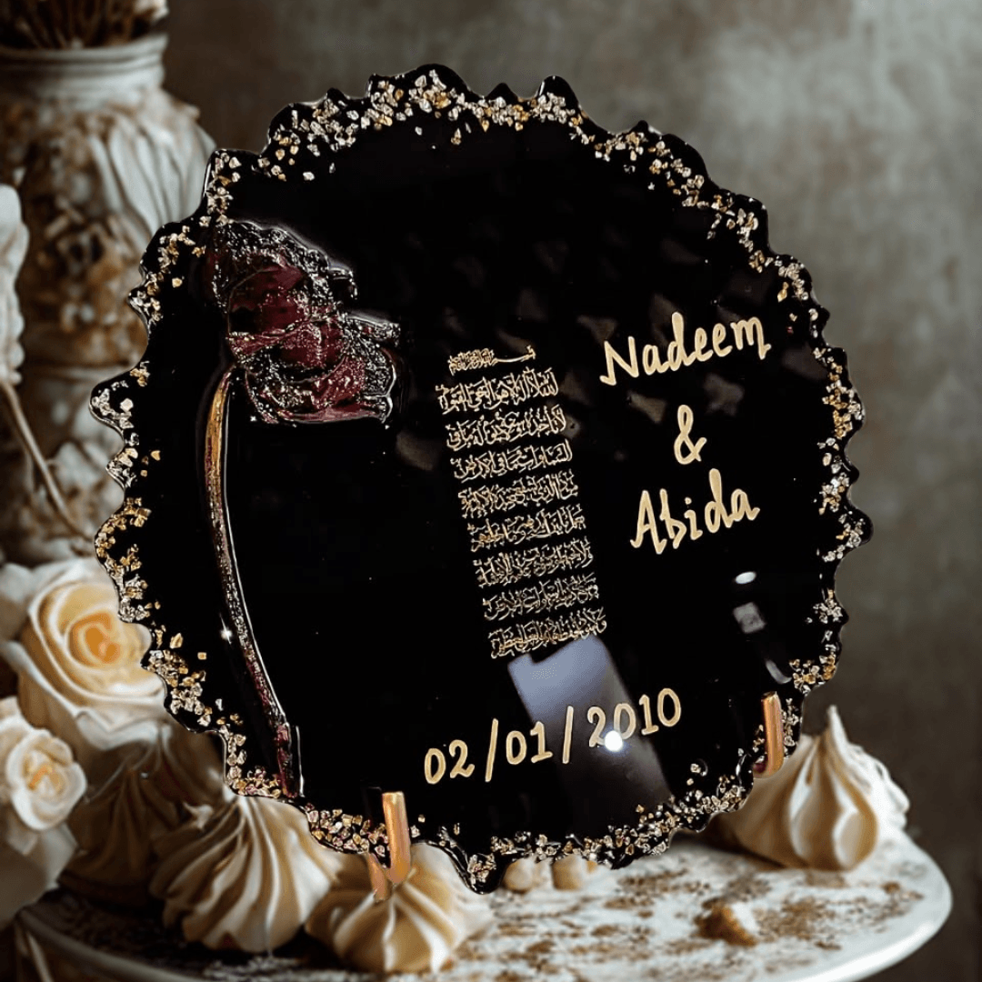 A beautifully handcrafted resin decor piece featuring intricate Arabic calligraphy, perfect for adding a spiritual and artistic touch to your home or office. Ideal for gifting and enhancing Islamic home décor.