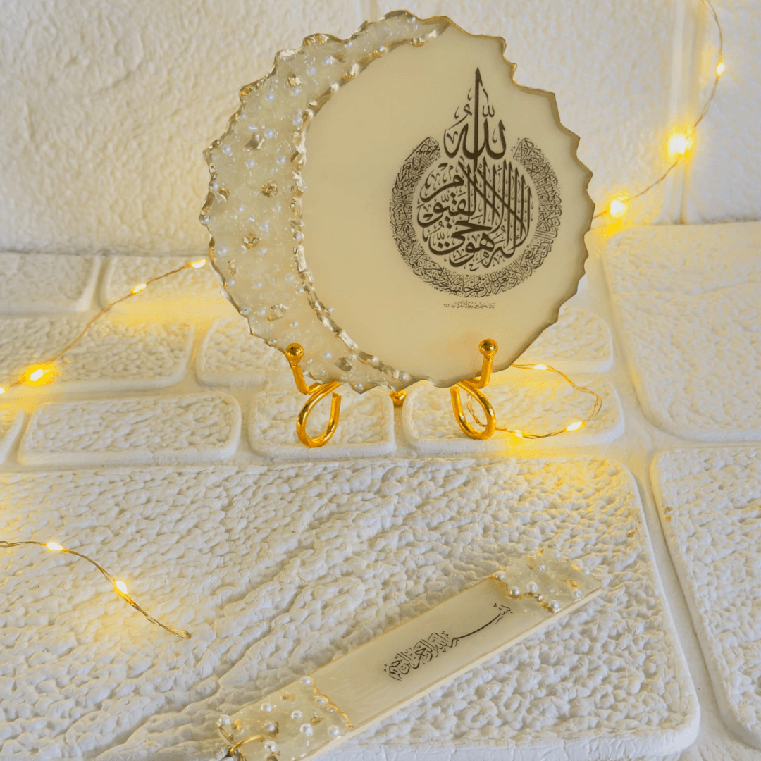 Elegant Islamic Resin Table Décor with Arabic Calligraphy