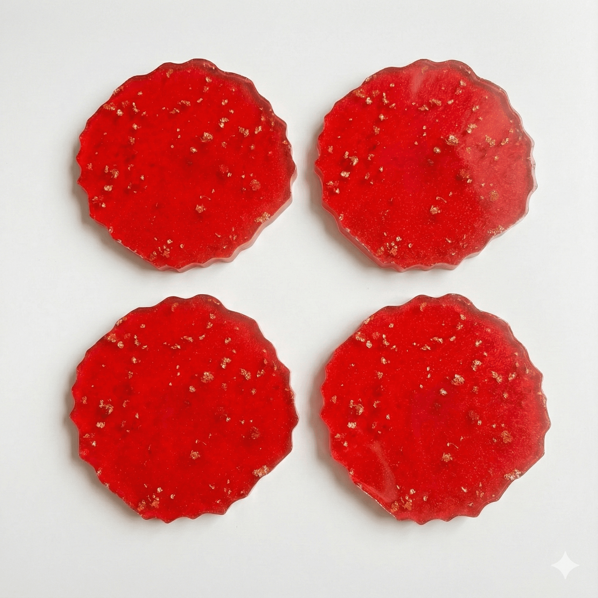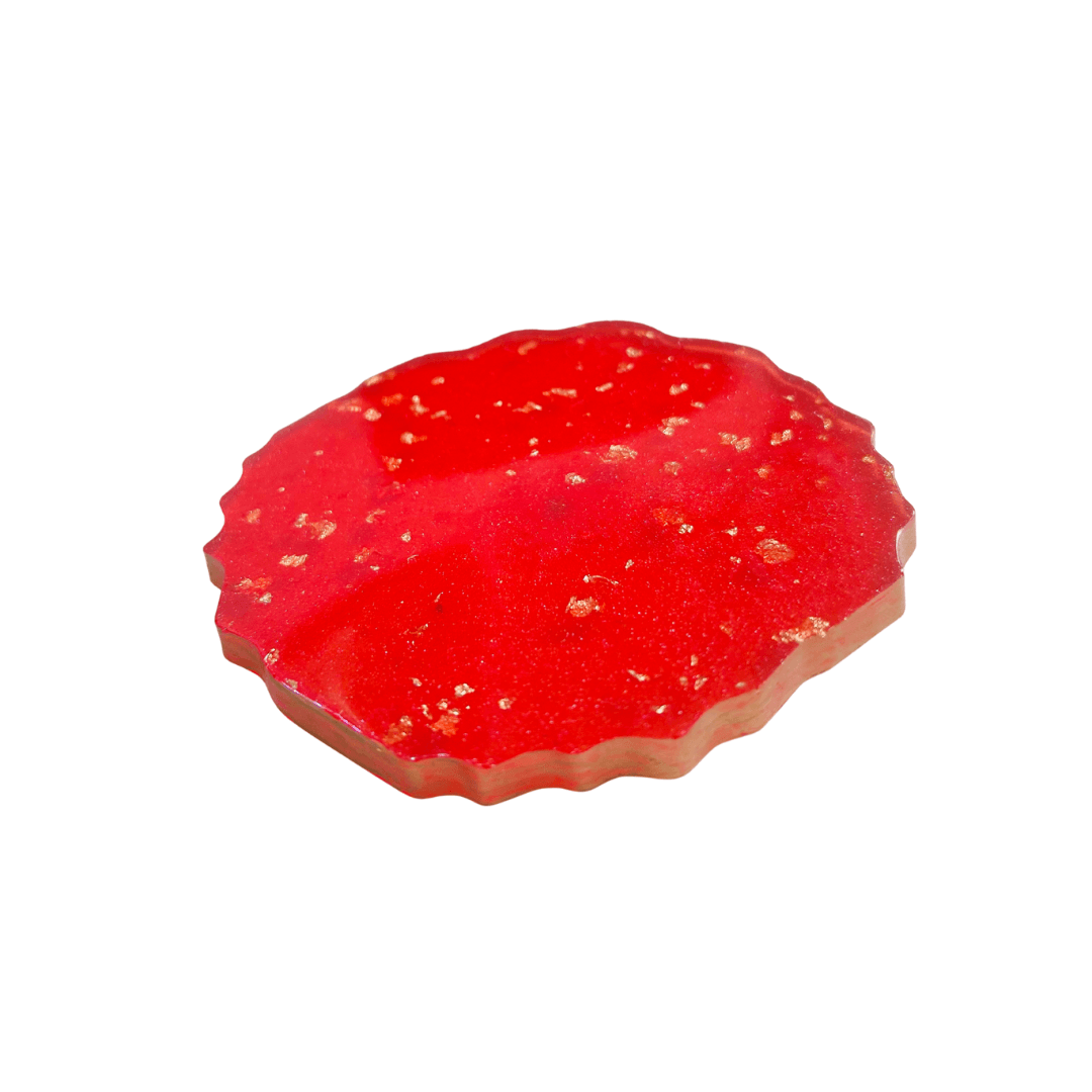 Our Red Coasters are lovingly handcrafted with a dreamy pastel blend of red and gold, Each coaster glimmers with subtle sparkle, making it both functional and decorative — a perfect blend of art and utility.