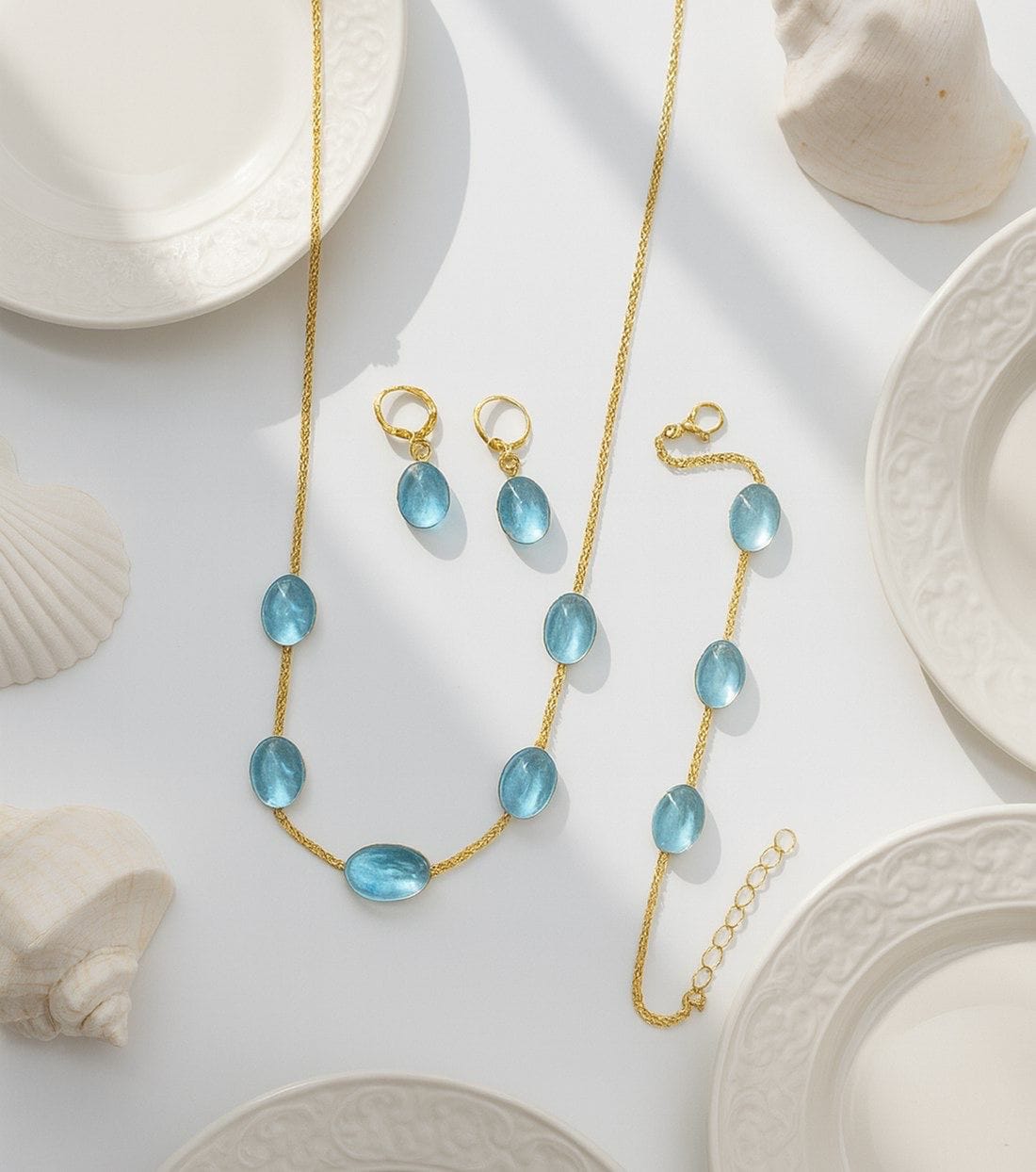 Royal Aqua Blue Stone Necklace & Earrings Jewelry Set – Elegant Gold-Tone Finish