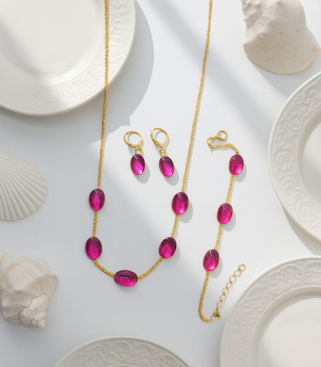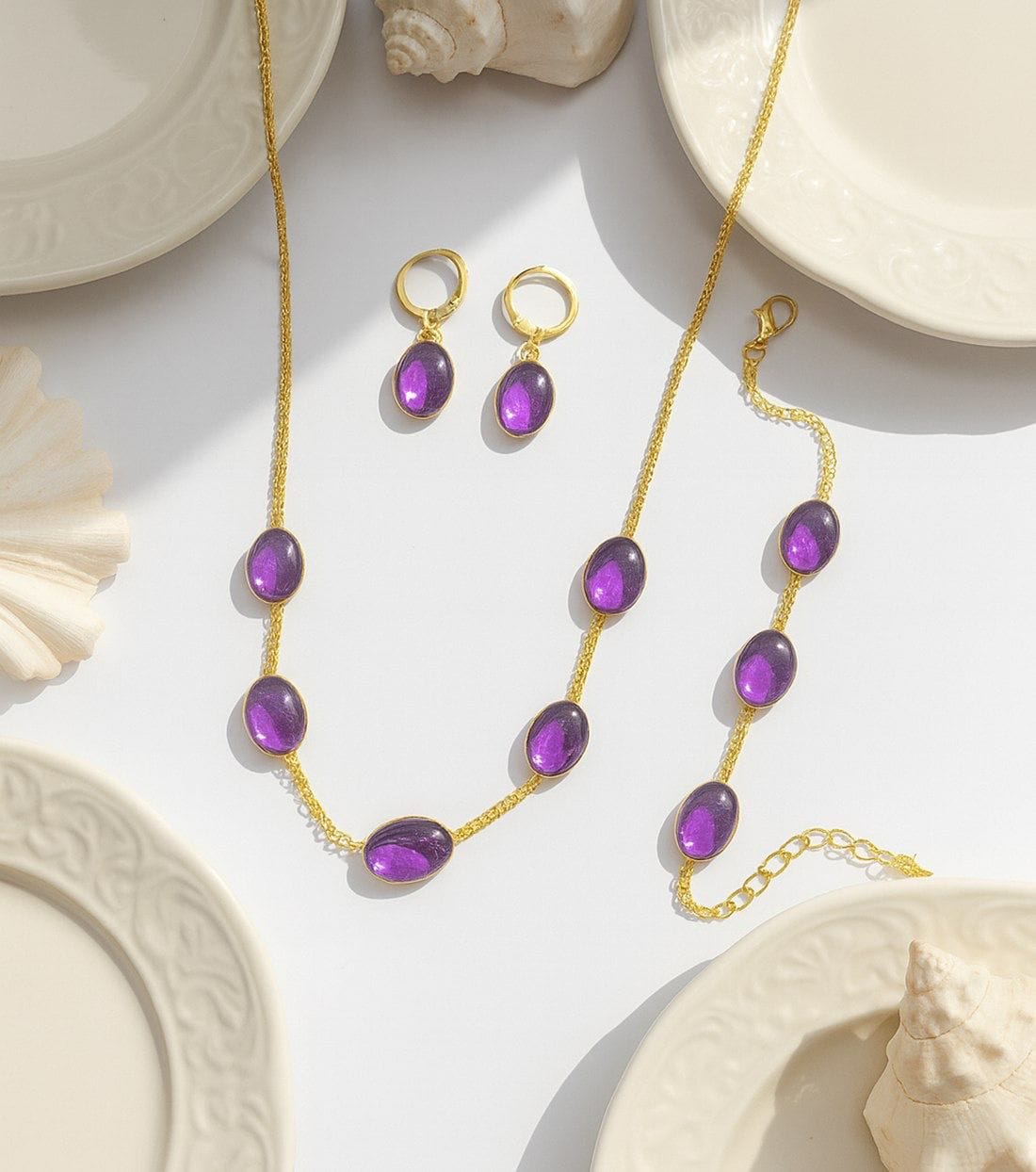 Add a touch of royal elegance to your look with this beautifully crafted jewelry set. Featuring soothing aqua blue stones set on a graceful gold-tone chain, this matching necklace and earrings set is perfect for festive occasions, parties, and elegant everyday wear. Lightweight, stylish, and timeless—an ideal choice for gifting or personal luxury. ✨